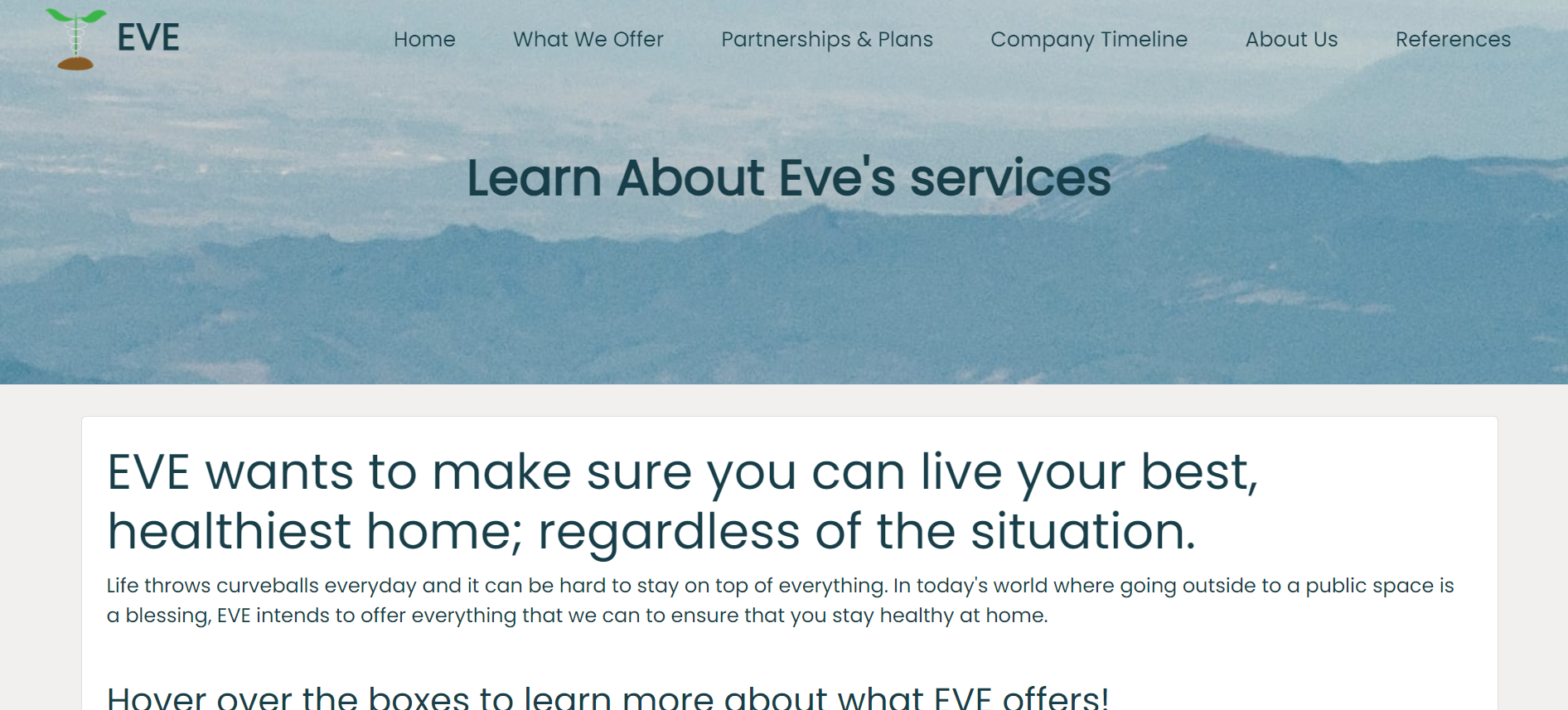 “EVE”. The landing page (shown on the left) is a great example of a design that